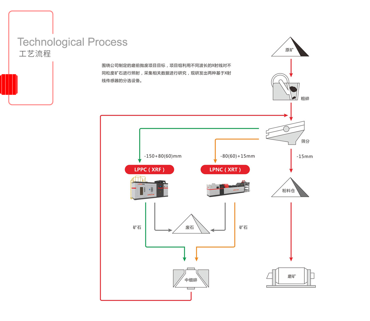 隨著逐年開采,目前國內礦山企業的資源貧化,選礦廠成本提高,礦石預選工藝的應用是降低選礦廠成本、提高企業效益的有效途徑。